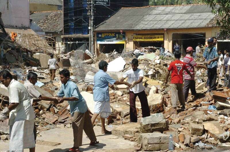 "ריבון יכול למנוע טיפול רפואי מאזרחיו, ולאו"ם אסור להפריע לו". הריסות הצונאמי בסרי לנקה, 2004 // צילום: אי.אף.פי