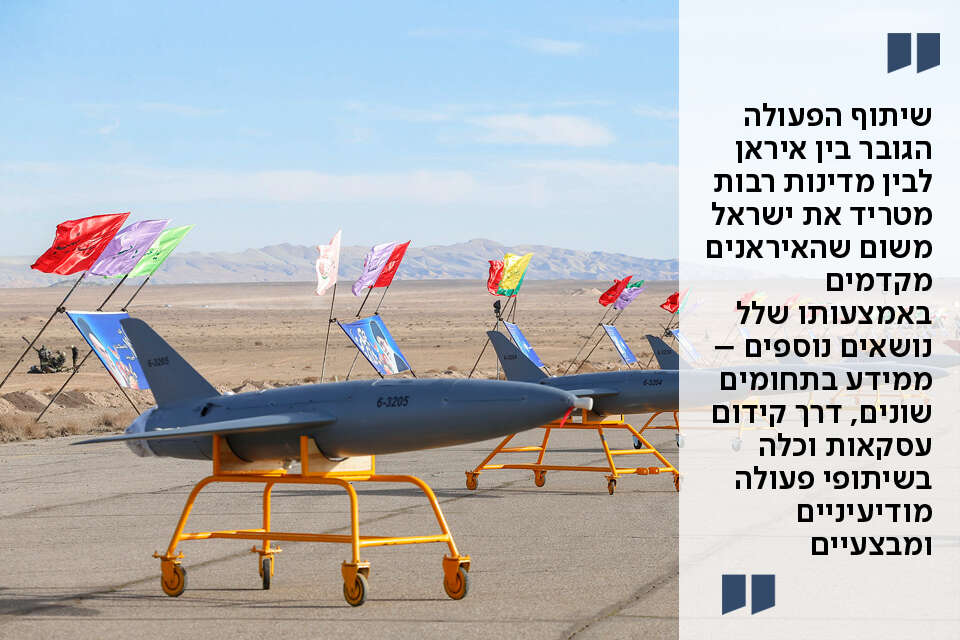 שיתוף הפעולה הגובר הזה בין המדינות מטריד את ישראל גם משום שהאיראנים מסתייעים בו כדי להתקדם בשלל נושאים נוספים – מידע בתחומים שונים לרבות פיתוח וייצור של טילים היפרסוניים ומשגרי לוויינים, דרך קידום עסקאות (לרבות מטוסי סוחוי-35), וכלה בשיתופי פעולה מודיעיניים ומבצעיים. "הם מנסים לסחוט את הלימון הזה עד הסוף", אומר הגורם.