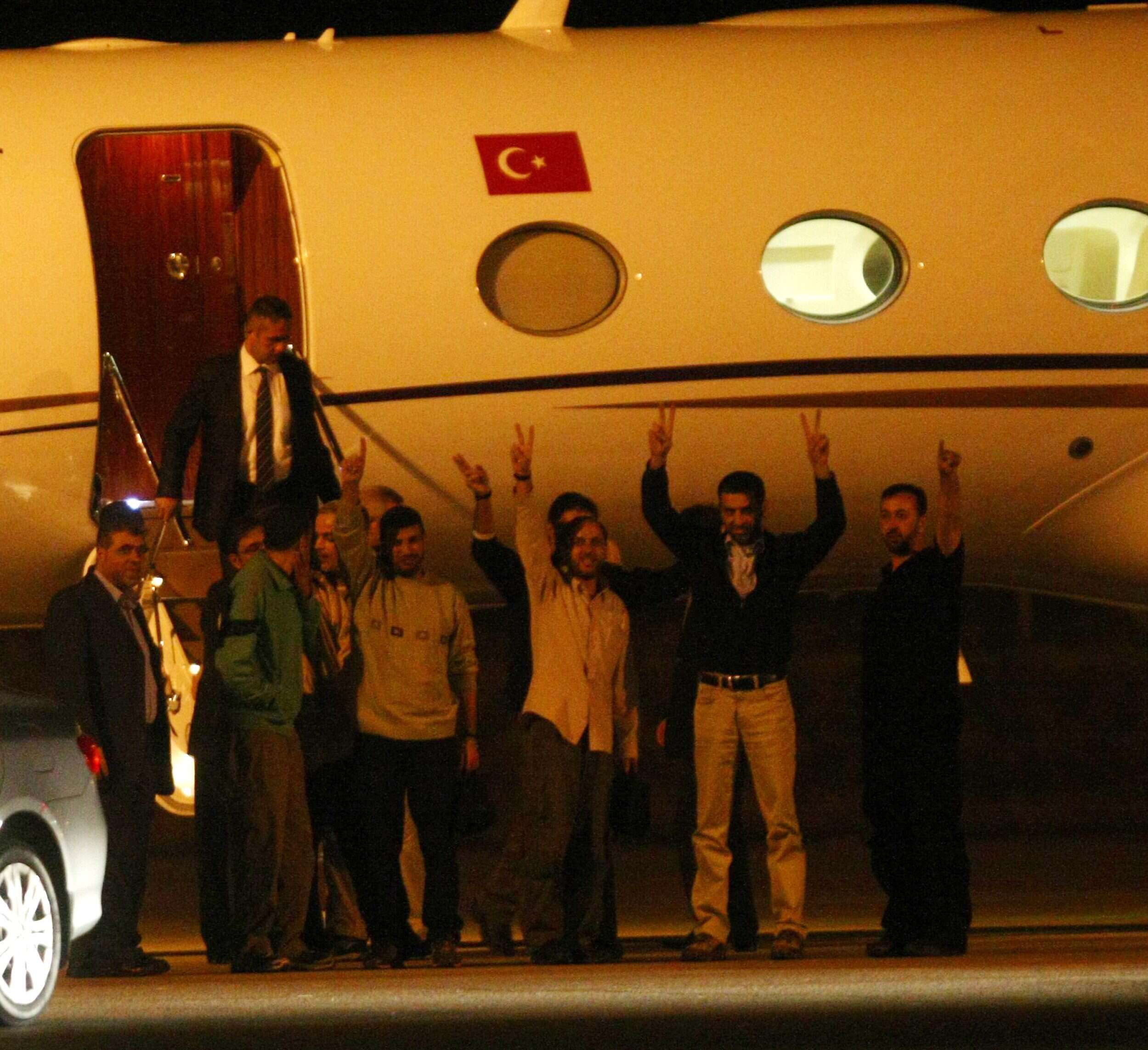 משוחררי עסקת שליט שגורשו לטורקיה חוגגים עם נחיתתם באנקרה, אוקטובר 2011 | צילום: AFP