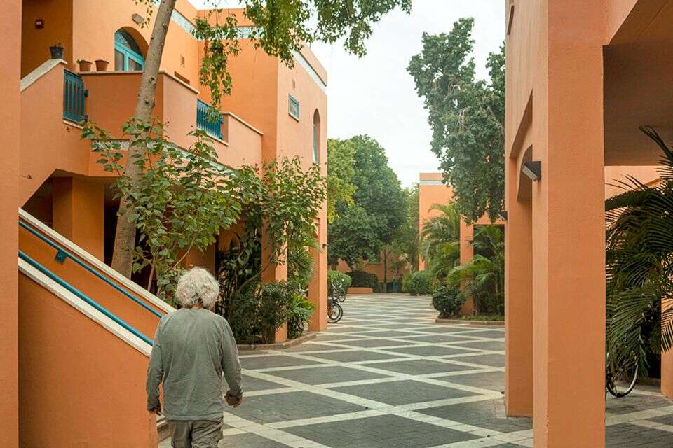 בכר צריכה לחזור לעיסוקיה הדיגיטליים לפני שהילדים יחזרו מבית הספר. אני נפרד ממנה ומשוטט במשעולי המתחם. חלק מהדלתות הכחולות של חדרי המלון פתוחות ומאפשרות הצצה פנימה. בחדר אחד זוג מבוגר יושב וקורא, בחדר אחר אישה צעירה בוהה במסך.