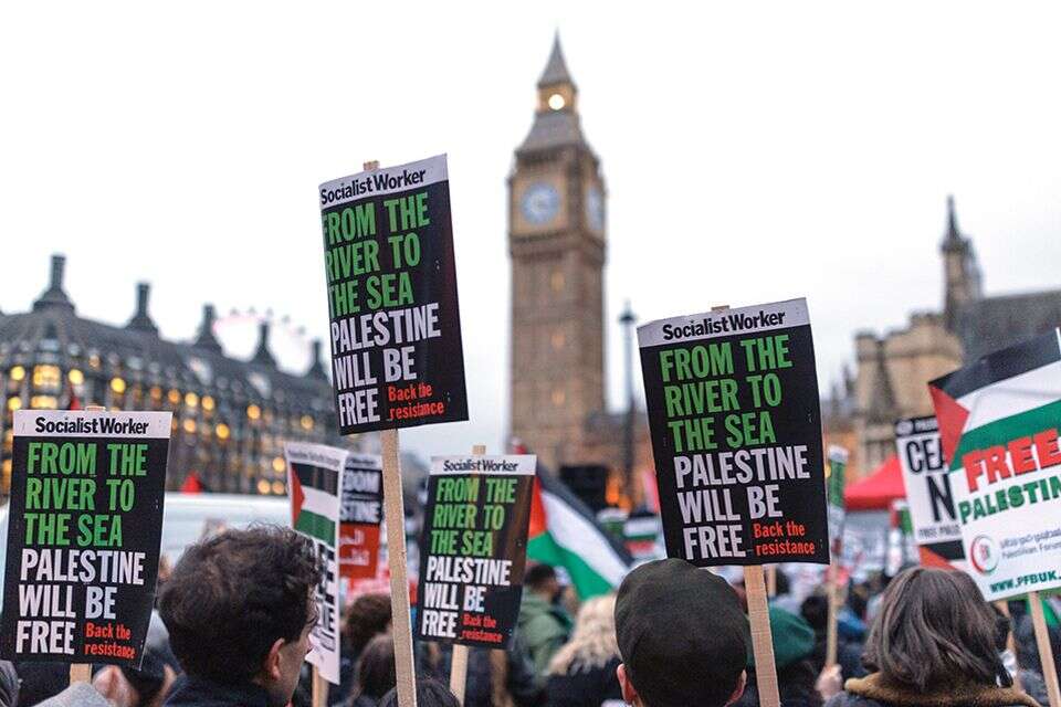 שיאה השלילי של אחת מאותן עצרות ענק לפני כחודשיים, באירוע שנתפס פה ממש כחילול הקודש, היה הקרנה על שעון הביג בן המפורסם של הסיסמה "מהים ועד לנהר פלשתין תשוחרר". הקהילה היהודית נזעקה, והסבירה כי המשמעות היא חיסול ישראל. סונאק הגיב וגינה, ומאז מעשה כזה לא חזר - אך הטראומה בהחלט נצרבה.