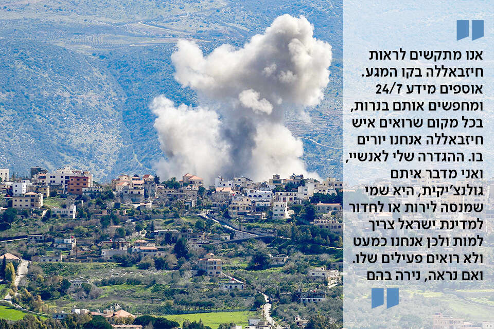"אנחנו מתקשים לראות חיזבאללה בקו המגע. אנחנו אוספים מידע 24/7 ומחפשים אותם בנרות, ובכל מקום שאנחנו רואים איש חיזבאללה אנחנו יורים בו. ההגדרה שלי לאנשים שלי, ואני מדבר איתם גולנצ'יקית, היא שמי שמנסה לירות או לחדור למדינת ישראל, צריך למות. ולכן אנחנו כמעט שלא רואים פעילים שלו. ואם נראה, נירה בהם".