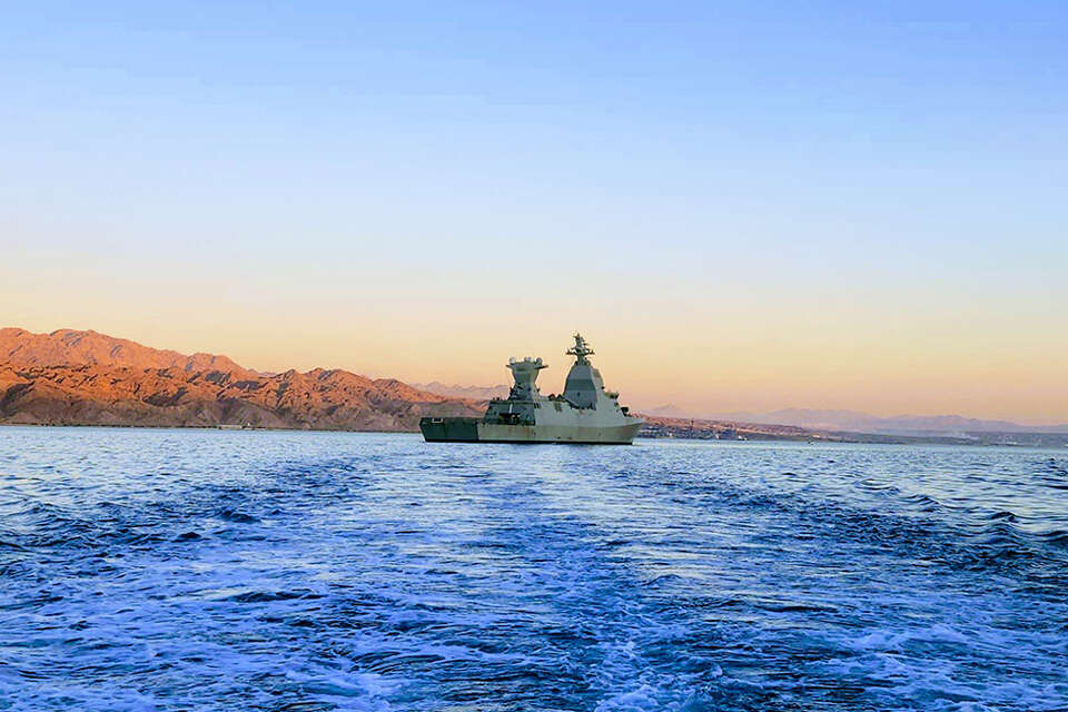 סא"ל רן מוביל אותנו במסדרונות המצוחצחים של אח"י ניצחון. מדובר בספינת הטילים החדשה ביותר של חיל הים, שכלל לא היתה מבצעית ב־7 באוקטובר. בתוך שבועיים בלבד הצליחו בחיל להשלים את המשימות הדרושות ולהוציא אותה אל הים. אנו נכנסים לתוך חדר שעליו סימני אזהרה ומוצאים את עצמנו מוקפים בפגזים בקוטר 76 מ"מ, מוכנים לירי מתוך התותח של הספינה. בחדר הסמוך מוצבת כיפת ברזל הימית, שעד המלחמה לא היתה בשימוש מבצעי, וכעת רשמה כבר שני יירוטים מוצלחים בהגנה על אילת.