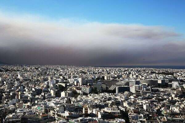 עשן שחור מהשריפות מעל אתונה, בירת יוון | צילום: אי.פי.איי