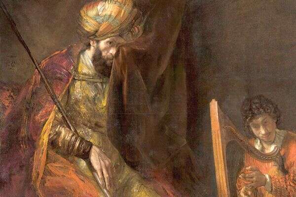 ממרחק השנים שוקעות הזוטות ודמויותיהם מזדהרות. "שאול ודוד" מאת רמברנדט. הולנד, בין 1650 ל־1670 | צילום: .