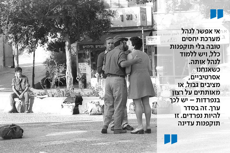 "קשה לתת תמיכה למישהו כשאדם בקושי מחזיק את עצמו. תחשוב על המילואימניק ששב ממילואים, ואשתו רוצה שייקח קצת אחריות על הילדים כדי לנוח, בשעה שהוא רק רוצה להתחפר במיטה ולשכוח את כל מה שראה. אלה אותן ציפיות שמייצרות את רמות המצוקה. וזה אבסורד - כי דווקא עכשיו כולנו זקוקים לתמיכה משפחתית, אבל קשה לגייס לכך משאבים".