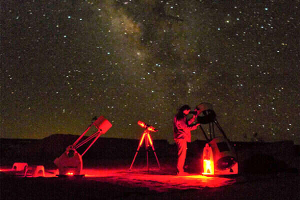 הילדים נעמדים בתור כדי לצפות בכוכבים. כל נגיעה קלה מזיזה את הטלסקופים. על כדור הארץ זה כמה מילימטרים, אבל בחלל זו תזוזה של אלפי קילומטר. ״את לא יכולה לקבע את הטלסקופ?״, רוטן הורה קצר רוח מהמתנה. ״שמים לו טכנולוגיה מדהימה לראות כוכבים, באמצע המדבר, והוא מתעצבן שצריך לכוון?!״, רוטן הורה אחר. כשמגיע תורנו, אנו מקבלים הצצה קסומה ל״אוזני השטן״ של שבתאי, ולירחים של צדק, ובהן צדקי שאנו מרוצים לחלוטין.