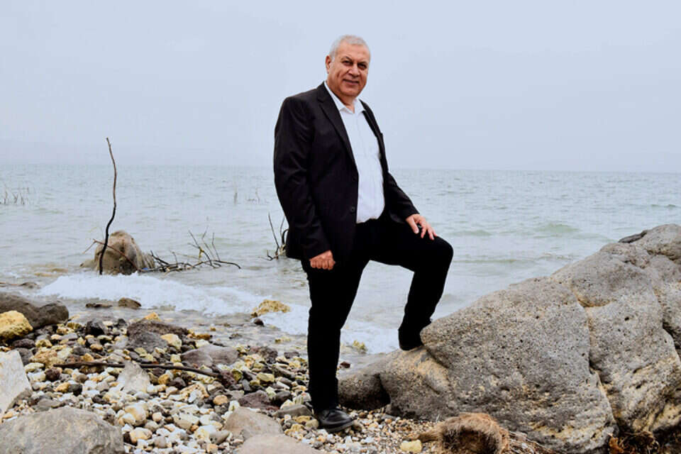 בועז יוסף על רקע הכנרת, צילום: יוסי זליגר