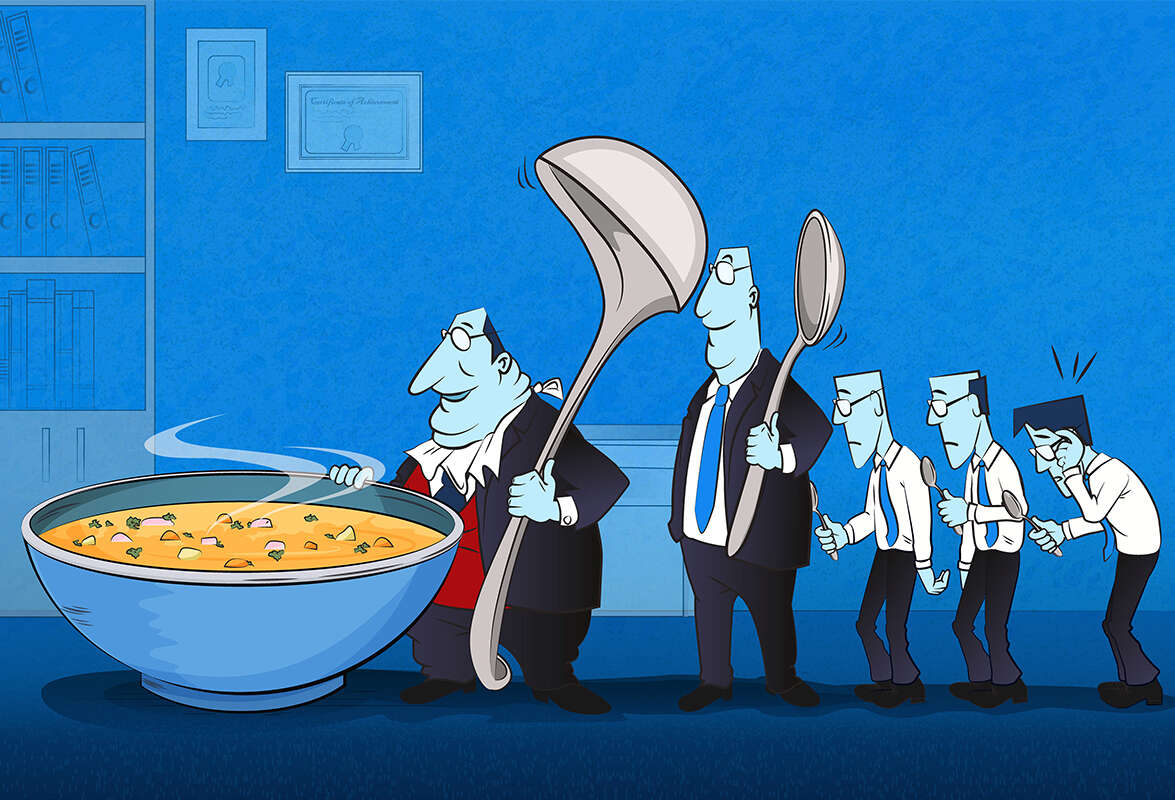 חלקם, כמו שכתב אפטון סינקלייר, הסופר האמריקני בן המאה ה־19, שאגב היה לשנוא נפשו של הנשיא רוזוולט, כי "קשה לגרום לאדם להבין משהו כשמשכורתו תלויה בכך שהוא לא יבין זאת". הם באמת לא מסוגלים להבין את הלופ המחשבתי שבו הם כלואים, ורבים מהם לא מתאמצים לעשות זאת. כך למשל, אדם שמנהל מוסד הימורים ממשלתי יספר בלהט שהוא בעצם מנהל מפעל חסד. ברור שקשה לו לחיות עם האמת כשהוא מקבל משכורת נאה כדי להדחיק אותה. "משרת ציבור" אחר מתעמר ביזמים ובאזרחים בשם עשיית צדק, אגב פרסום הישגיו כמתעלל מוביל.