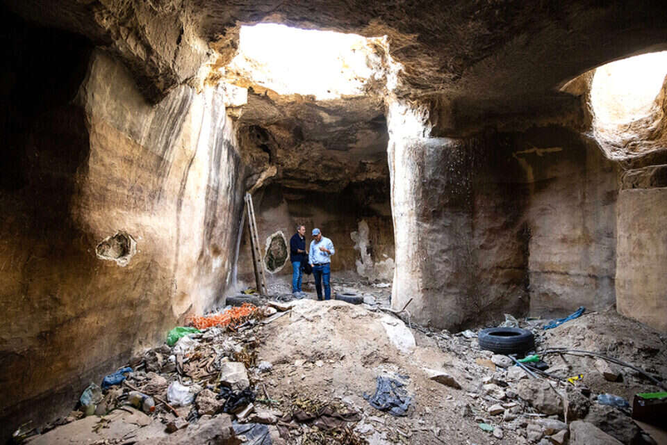 השבוע שררה במקום עזובה. לא הרבה נותר מהפסיפס, וכשירדנו במדרגות חצובות בסלע לאחד מבורות המים הגדולים במתחם, מצאנו שהפך למזבלה שיש בה הכל: צמיגי רכב משומשים, צמר כבשים, סולמות, פחי סיד ריקים, נעליים בלות, ציוד חשמל ישן וברזלים רבים. שפייזר, שביקר שם לראשונה לפני חודשים אחדים, ראה כיצד השמישו תושבים מקומיים בור סמוך אחר כ"בית קברות" לנבלות של כבשים, חתולים וכלבים.