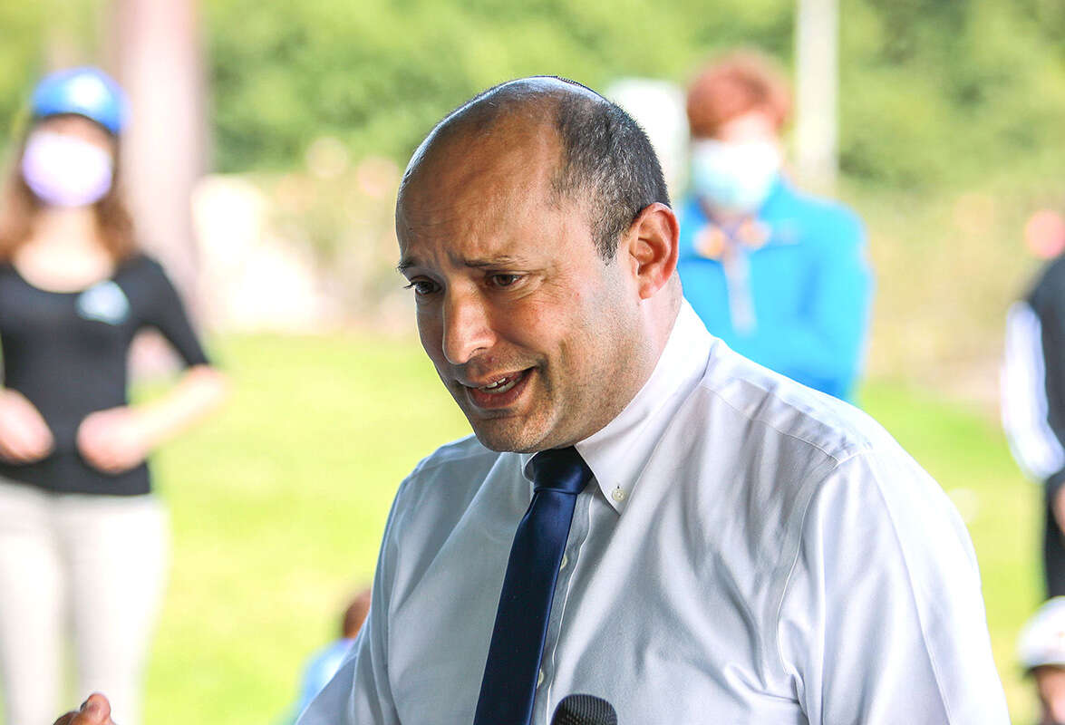 צילום: אורן בן חקון // ילמד מהטעויות של גנץ. בנט ליד משכן הכנסת