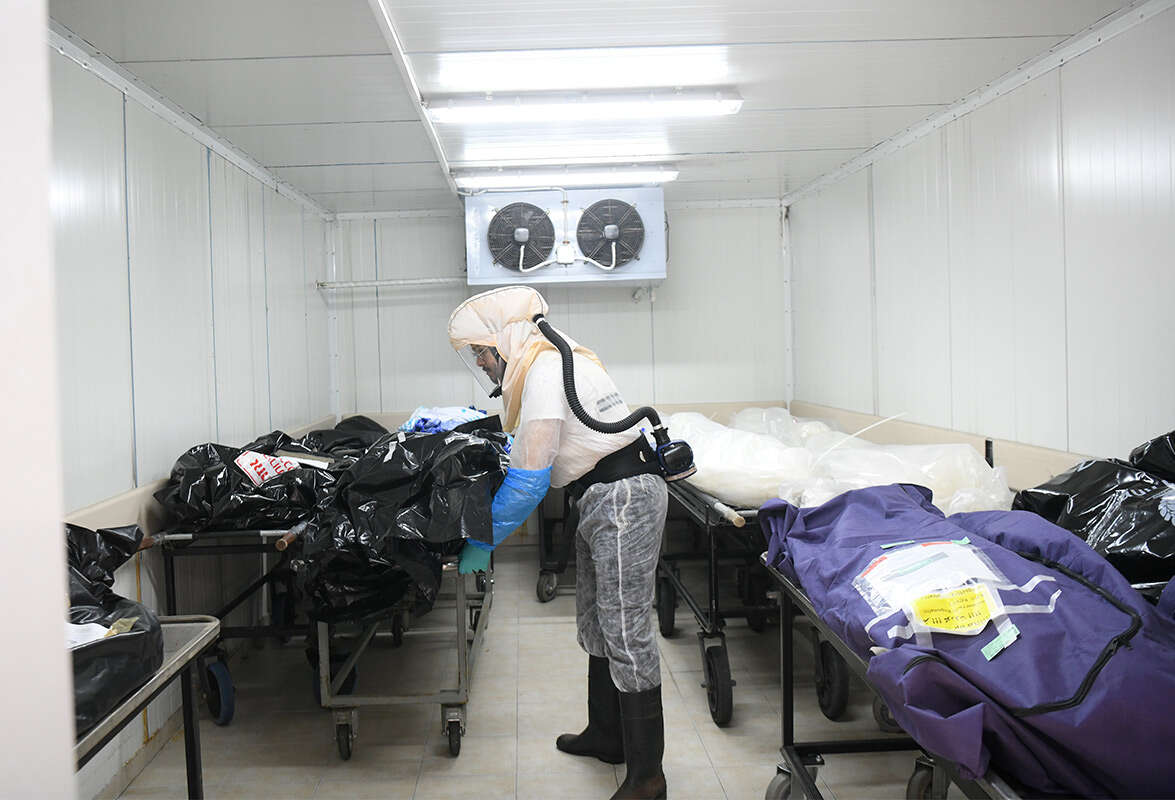 קורץ והצוות שלו קיצרו כאן את זמני העבודה שלהם משמעותית מאז החלה הקורונה. התהליך החדש שנכנס לפני פחות משנה לבתי הקבורה בישראל הקשה עליהם בתחילה את העבודה: מהרחיצה ועד העיטוף הכפול של המנוח היו עוברות דקות ארוכות, ואילו עתה, וסליחה על הקלישאה, הדברים עובדים כסרט נע. ככה זה כשהמספרים עולים והניסיון מצטבר.