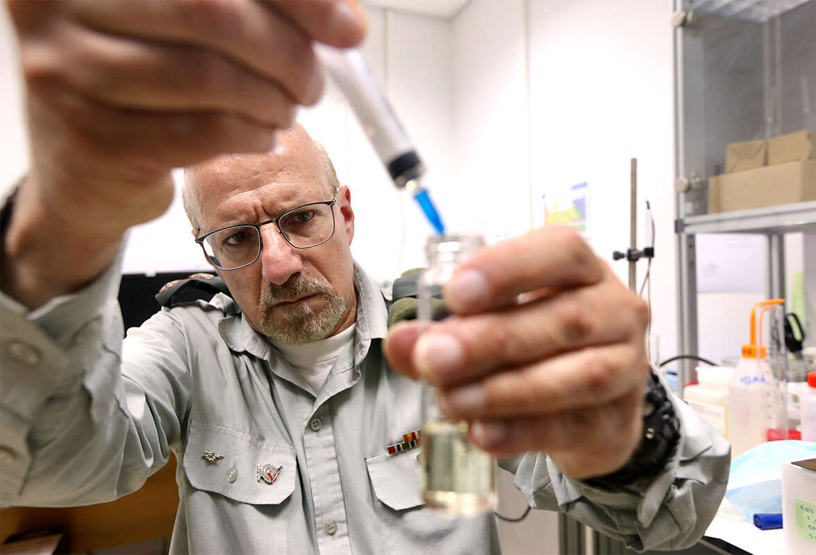 בראש המעבדה עומד כבר 25 שנה סגן־אלוף ערן תובל (60), מפקד מסגרת חומרים וכימיה, תושב ראש העין, שהחל את דרכו בה לפני 40 שנה כעתודאי. הוא נחשב למוקד ידע ובר־סמכא בתחום החומרים והכימיה. על הקירות במעבדה יש לא מעט תעודות הוקרה, מכל יחידות הצבא, השב"כ והמשטרה, שמוכיחות, למרות ניסיונו של תובל להצטנע, עד כמה פעילותו חשובה.