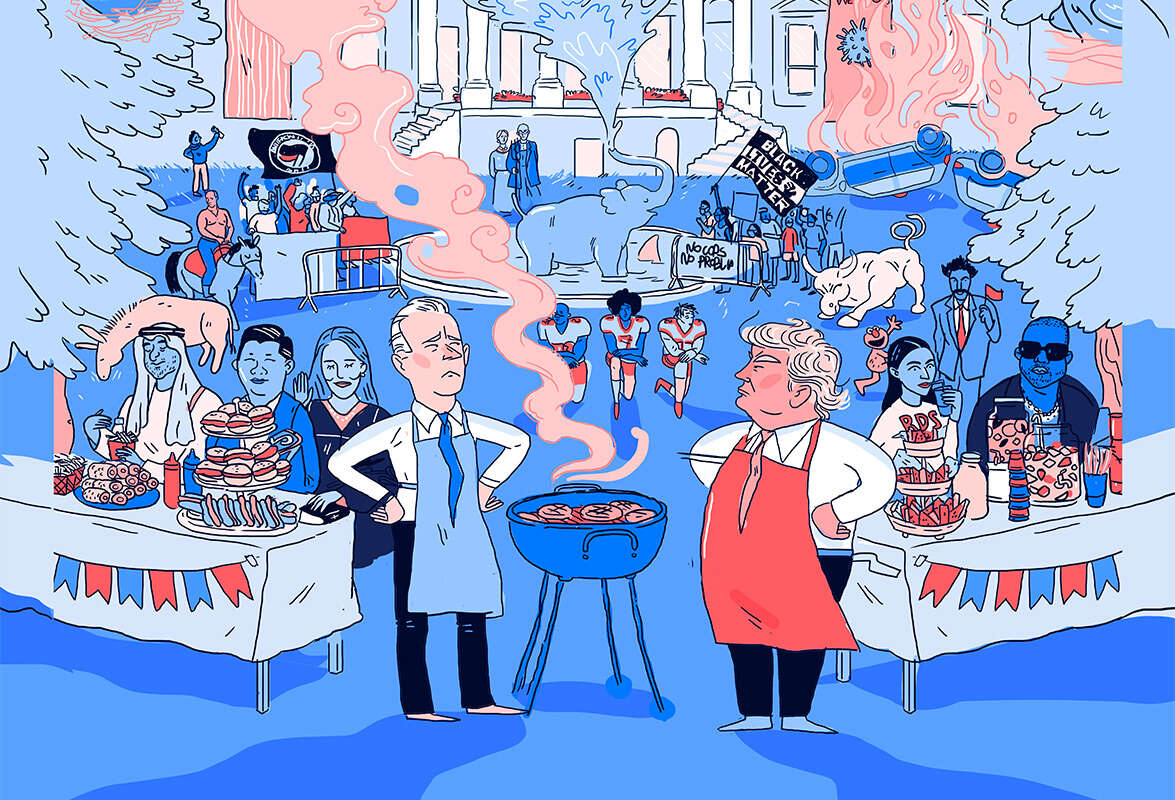 מגיפת הקורונה ללא ספק גנבה את ההצגה בבחירות 2020. אמריקה הפורחת בעידן טראמפ (אבטלה נמוכה, בורסה פורחת) שינתה פניה לאמריקה לחוצה, מודאגת, עם יותר מ־200 אלף מתים, מובטלים חדשים ובעיקר התפרצות מחודשת של מהומות על רקע גזעי, כולל השבוע בפילדלפיה.