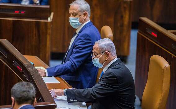 נתניהו וגנץ בחודש שעבר // צילום ארכיון: אורן בן חקון // נתניהו וגנץ בדיון בהצעת החוק לדחיית אישור התקציב, בחודש שעבר