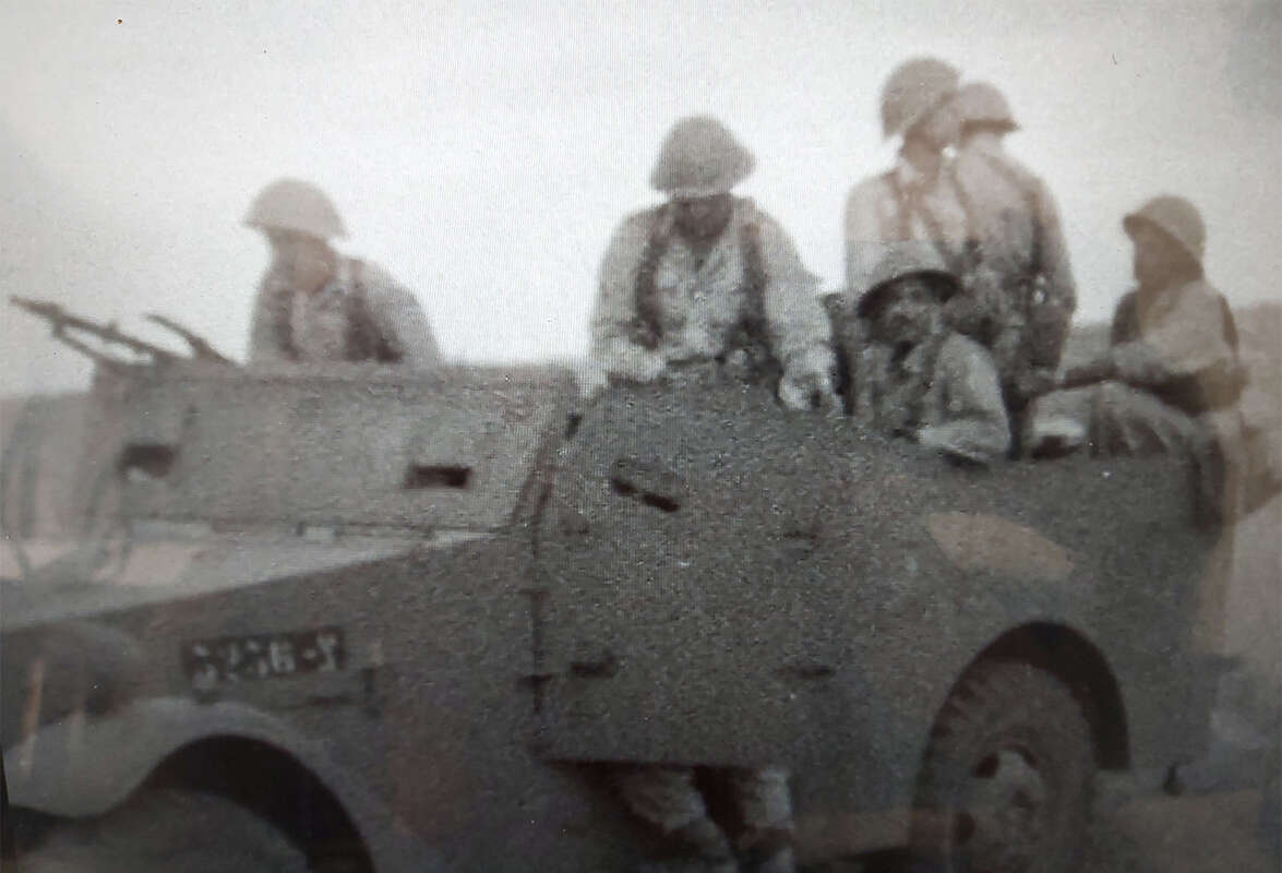 ראש לוחם עטוי קסדה מגיח בתחתית הפריים. רטייה על עינו. זה קל, זהו משה דיין. עברון מתאר בחֵן כיצד נמלא הקלה משונה בעת שקלט את דיין, כמו זיהה מכר ותיק בשדות זרים. הזיהוי מאפשר למקם את החומר הצילומי על צירי הזמן והמרחב. דיין הוביל את גדוד הקומנדו של חטיבה 8 במבצע דני. דיין עצמו, חשוב לציין, לא לחם עם הלח"י. אך משהו אינו מסתדר, משתף עברון את צופיו, הרטייה המפורסמת מונחת על העין הלא־נכונה. מתברר כי ימין ושמאל התהפכו במהלך ההמרה הדיגיטלית של הפילם.