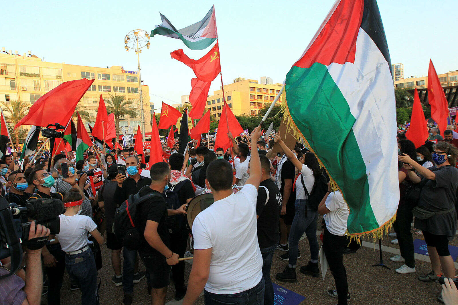 הפגנה סוערת נגד החלת הריבונות: אלפים התכנסו הערב (מוצאי שבת) בהפגנת שמאל בכיכר רבין בתל אביב נגד תוכנית החלת הריבונות ביהודה ושומרון כשחלקם נושאים דגלי פלשתין.