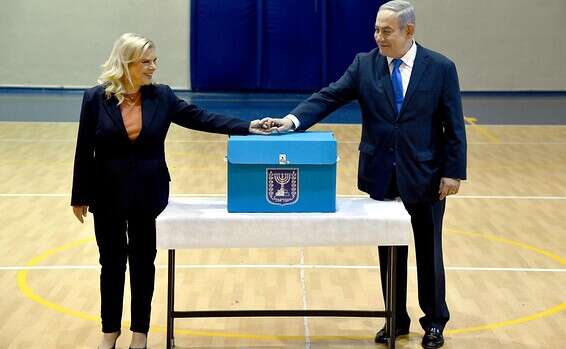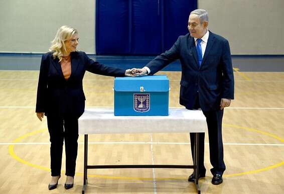 נתניהו ורעייתו מצביעים // צילום: חיים צח, לע"מ