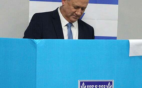בני גנץ הצביע בקלפי בראש העין // צילום: משה בן שמחון