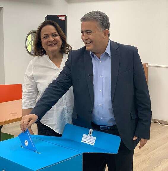 08:45: יו״ר העבודה גשר מרצ, ח״כ עמיר פרץ הגיע להצביע יחד עם רעייתו אחלמה פרץ, לקלפי בעירו שדרות. עמיר פרץ: ״הגענו לרגע האמת. המאבק בין הגושים צמוד מאוד, והניצחון בהישג יד. אנחנו יכולים לעשות את זה".