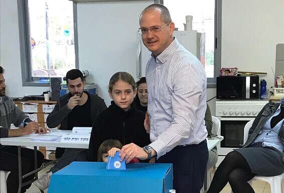 08:55: ח"כ עודד פורר, יו"ר סיעת ישראל ביתנו, הצביע יחד עם בנותיו במושב משמר דוד