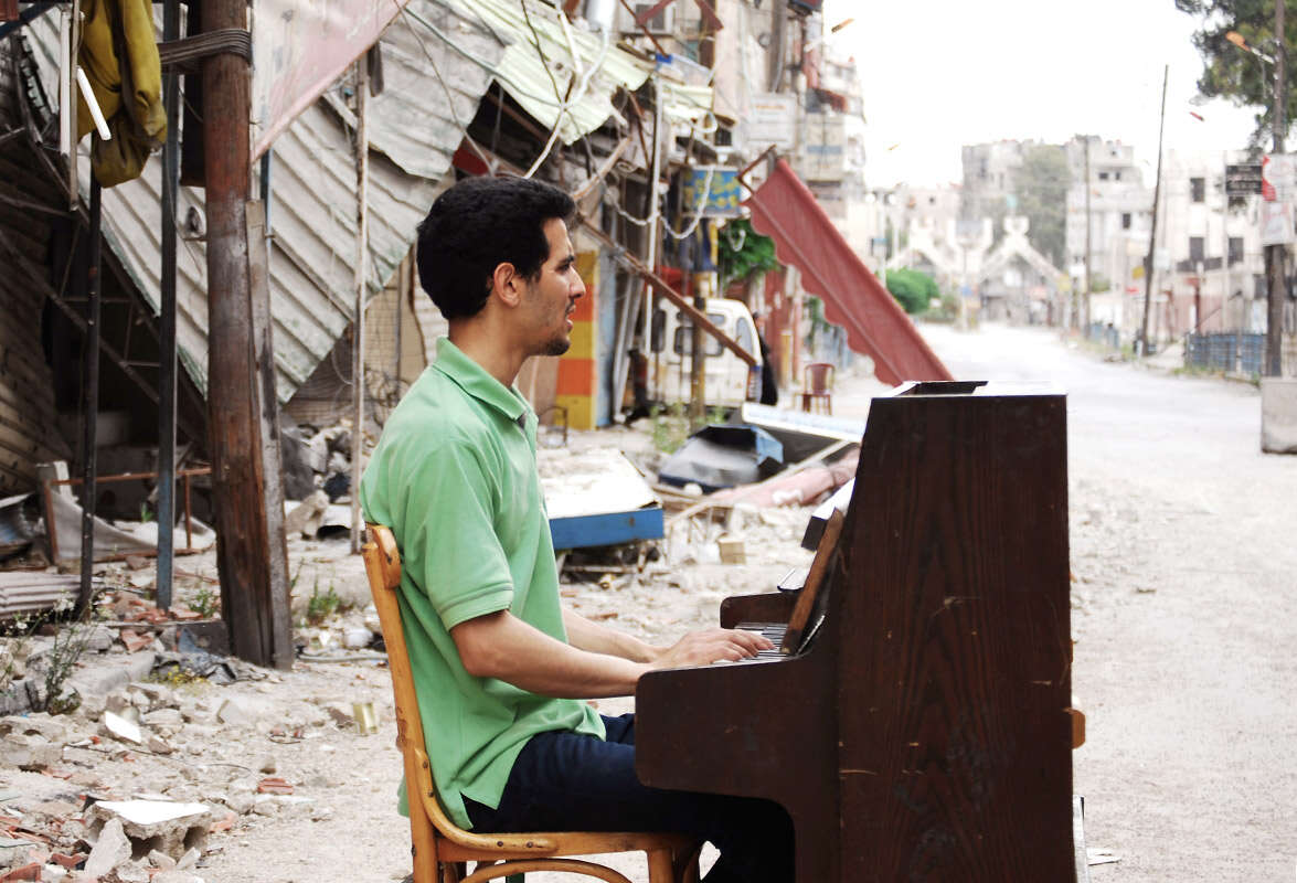 על סף ייאוש מהמלחמה בסוריה, הוביל היאם אחמד, פליט פלשתיני, את פסנתרו ברחובות ירמוכ המופגזים - וניגן את המציאות הכואבת • ראיון