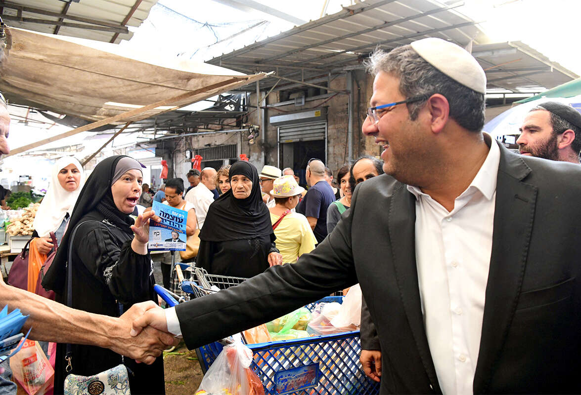 ההמון מקיף אותנו: "מצביע רק לך, שאלוהים ישמור עליך. טוב שלא הלכת עם אף אחד אחר, רק אתה". אני שואל אותו אם הוא מאמין לאנשים שמלווים אותנו בביקור בשוק, כי לפי המספרים בשוק רמלה, בחישוב מהיר, בן גביר הוא פוטנציאל ל־14 מנדטים: "תשמע, אני חושב שלאט־לאט למדתי לזהות מי אומר אמת ומי לא, אבל אני אוהב את כולם.