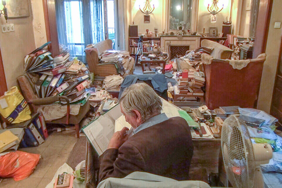 "עורך ספרותי הוא מפקד קומנדו". גבריאל מוקד בדירתו // צילום: מתוך הסרט // "עורך ספרותי הוא מפקד קומנדו". גבריאל מוקד בדירתו