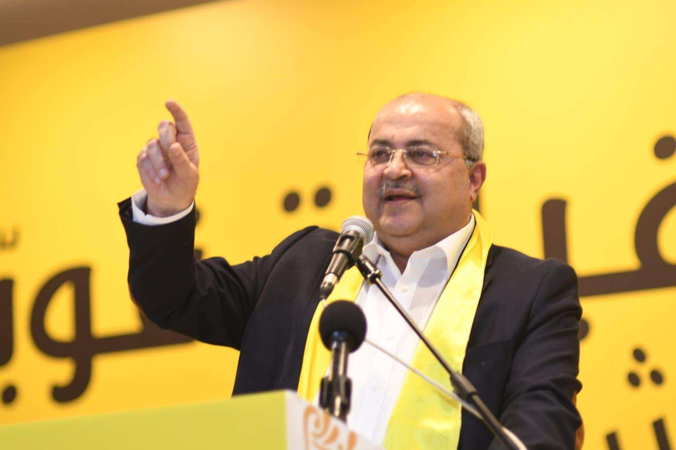 חה"כ אחמד טיבי (במרכז) בוועידת תע"ל בערערה, היום // צילום: דוברות תע"ל