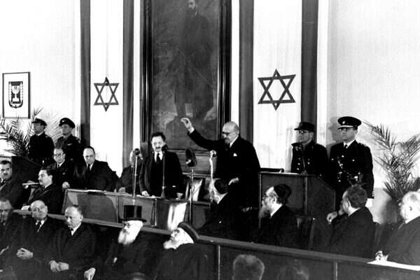 ויצמן, שקולו רעד מהתרגשות, אמר כי "ברגש של יראת כבוד והדרת קודש אני קם לפתוח את האסיפה המכוננת של מדינת ישראל. ברגע הגדול הזה בתולדות עמנו - ניתן שבח והודיה לאלוהי ישראל שבחסדו זכינו לראות בגאולה לאחר דורות של סבל וייסורים. מעמד זה הוא פרי ההתעוררות הכבירה של הרצון הלאומי שקמה בעמנו בדורות האחרונים".