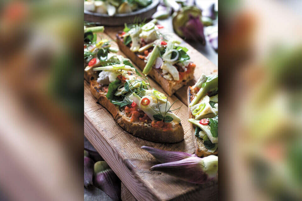 ברוסקטת ארטישוק נא, עגבניות ולימונים כבושים