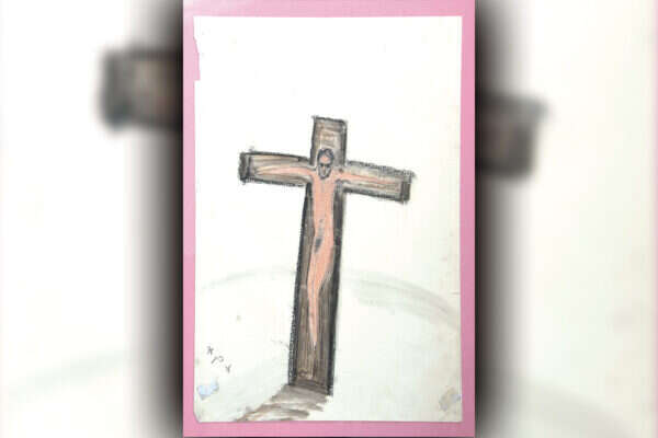 שני ציורים המתכתבים זה עם זה, בטכניקת רישום עם צבעי מים על נייר. זוג גברים עירומים צלובים על צלב גדול - בציור העליון אסי דיין עצמו, וכאן בנו ליאור בצעירותו. דיין צייר את עצמו כדמות מלאת פאסון, עם בלורית מסודרת ומשקפי שמש, בתנוחה שמדגישה את האגן ממש כמו פסל רומי קלאסי. הרקע הלבן, וכמובן הצליבה עצמה, מספקים השוואה מתבקשת לישו.