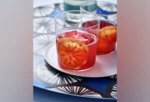 » מוזגים לתוך 2 כוסות עם 2 קוביות קרח בכל אחת, מוסיפים עוד טיפת אנגוסטורה לפי הטעם ומקשטים בפלחי תפוז דם.
