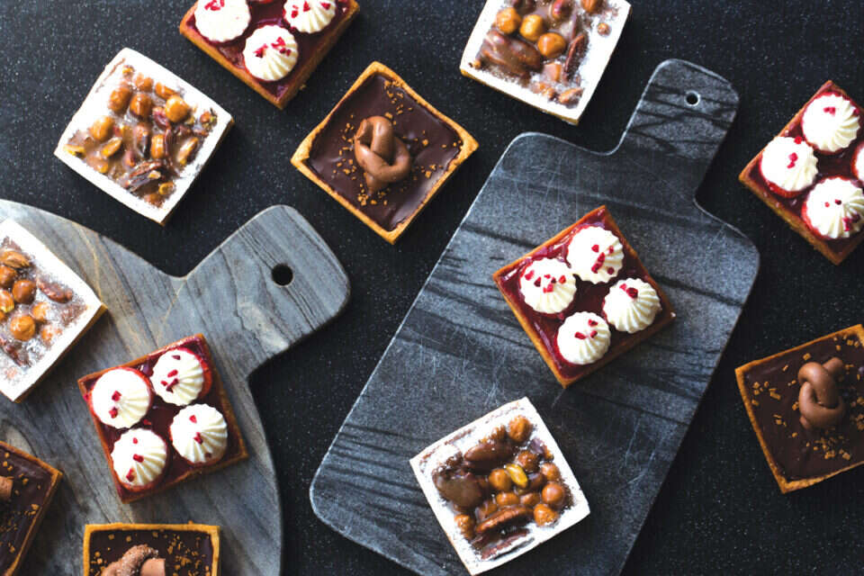 עם אגוזים וטופי, גנאש שוקולד ומרשמלו או קרם שקדים ותותים: שלושה טארטים מרובעים אישיים, שיעשו לכם נעים בפה