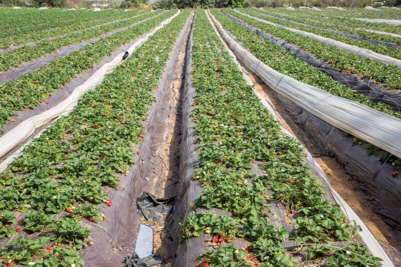 ערוגות תות בחוות שדות בקיבוץ משמר השרון. כדאי לשלב טיול באזור // צילום: יהושע יוסף
