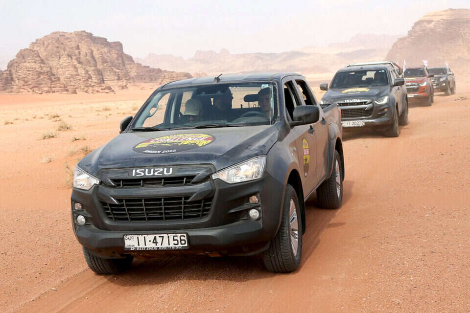 שבע וחצי בבוקר. תחנת מעבר הגבול הצפונית עם ירדן, "גשר נהר הירדן", עוד לא התעוררה. בזה אחר זה, 28 טנדרי איסוזו דימקס מעוטרים במגנטים עם הלוגו "איסוזו צ'אלנג'", פושטים על התחנה, ובהם כ־70 משתתפים מחויכים, שיצאו לארבעה ימי מסע במדבר הירדני. כולם עברו מבחן באתגרי נהיגת שטח: טיפוס בעלייה תלולה, טיפוס מדרגה, מעבר תעלה, והתמודדות עם שיפועי צד וירידות חדות.