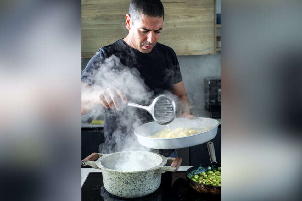 7. מכניסים את הניוקי למים לשתי דקות. כאשר הניוקי צפים, מוציאים אותם מהמים.