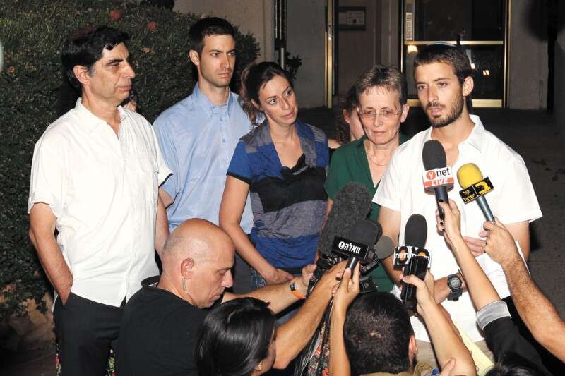 מסיבת העיתונאים של משפחת גולדין לאחר האסון. "הצלחנו להשיג את זה שכוחות צה"ל נשארו ברצועה עוד יומיים וחיפשו את הדר" צילום: קוקו