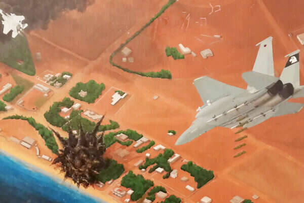 ה־F-15 שלהם, בגובה 25 אלף רגל. הם האטו קצת את מהירותם והמתינו מעל אי קטן לשבעת המטוסים האחרים, שיצטרפו בדרך הארוכה חזרה לישראל.