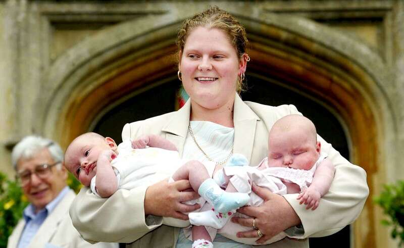 לואיז, יחד עם תאומים שנולדו כתוצאה מהפריית מבחנה. תקווה לזוגות מסביב לעולם // צילום: רויטרס