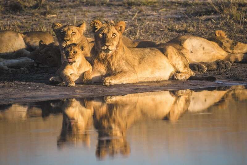 אחר הצהריים יוצאים לנסיעת ספארי, ברכב שבנוי כמו יציע של קולנוע, עם שישה מושבים מדורגים. הכל מסביב פתוח - תחושה מושלמת של חיבור לטבע, ומאוד נוחה לצילום. באחד ממאגרי המים שוכבת קבוצה של אריות בשמש, עם השתקפות מושלמת שלהם במים. משהו שיכול לבוא רק בהזמנה. אגב, לדברי המדריך שלנו טום, האריה מכניס את עצמו לצום של שבוע לפני שהוא בא אצל הלביאה - מאחר שהאיבר שלו כל כך קטן, שעל בטן מלאה הוא פשוט לא יכול לבצע. טום הוא כבר דור רביעי באפריקה למשפחה אירופית, ילד טבע פראי, משהו בין מוגלי לקרוקודייל דנדי. גדל עם אבא מדריך טיולים, ומגיל אפס הוא בטבע, יחף. מכיר את החיות בשמורה לפי שמותיהן הפרטיים, יודע לפי הגללים לזהות באיזו שעה עבר האריה ולאיזה כיוון הלך. ברוב המקרים הוא יידע באיזה אריה ספציפי מדובר, מתי הוא יבוא לשתות ומה הסיכוי לטרף. גם לסיפור הזה יש זווית ישראלית: "מוגלי" נשוי לבחורה בשם אתי מיבנה. גם אני התאהבתי בו מייד.
