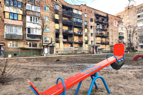 השכונה הסמוכה עוברת עבודות שיפוץ אינטנסיביות, ושני פועלים זוללים סנדוויצ'ים על הקורות שיהפכו בעתיד לגג של בית משוקם. על פי הערכות הבנק העולמי, עלות שיקום כלכלתה של אוקראינה עומדת עתה על 600 מיליון יורו, ובשיטוט באירפין אפשר להבין היטב מדוע.