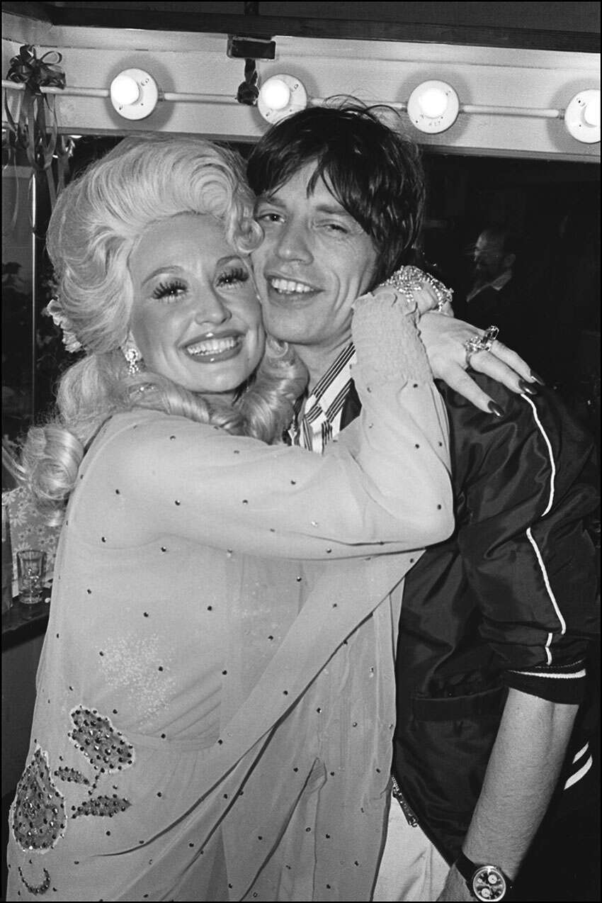 למטה: מיק ג'אגר ודולי פרטון במועדון בוטום ליין (Bottom Line) בניו יורק, 1975