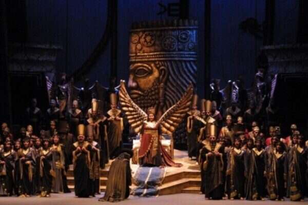 כאילו כדי להצדיק את המסע אל עומק השבר הסורי-אפריקני טרחה האופרה הישראלית וייצרה את ההפקה הגדולה בתולדותיה. הבמה במצדה תהיה גדולה פי ארבעה מזו שבמשכן לאמנויות הבמה בתל אביב, בניינה הקבוע. צוות המשתתפים ימנה יותר מ-600 איש. על הטריבונות העצומות שהוקמו במדבר הוכנו מושבים עבור 6,500 צופים, לעומת 1,600 המושבים של המשכן.