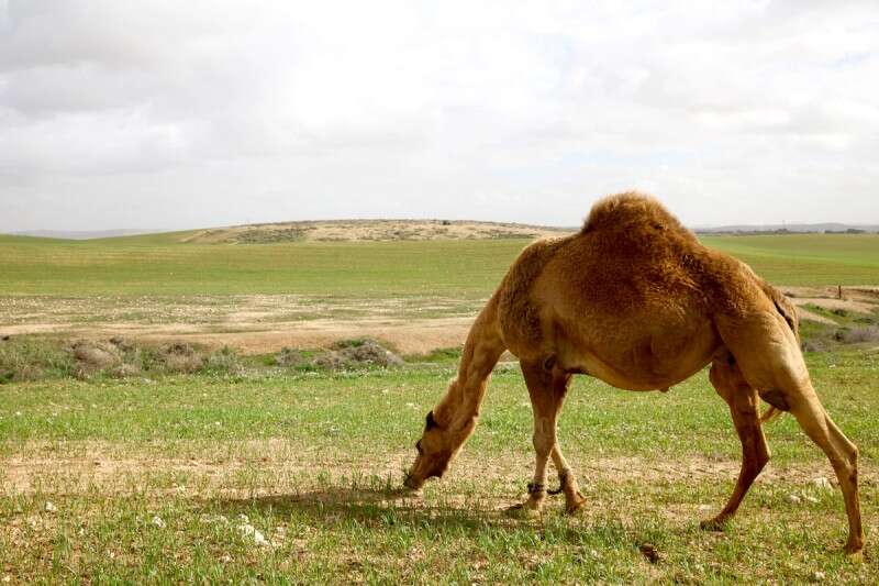 גמל במרעה ליד קיבוץ כרמים. מראה מפעים