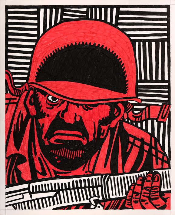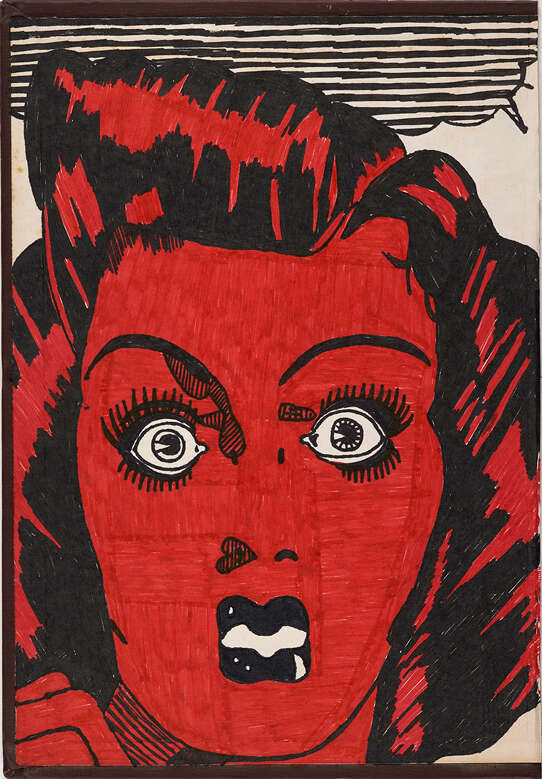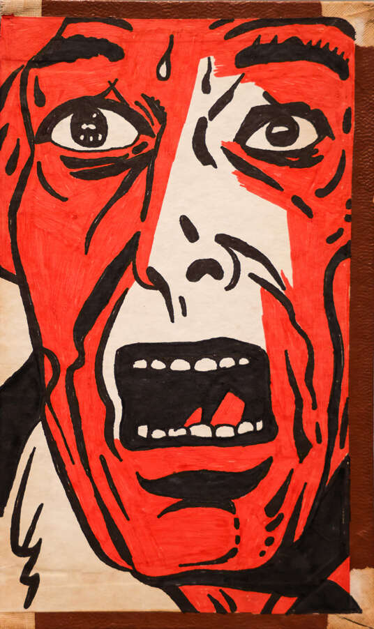 מימין "רישומי מלחמה", סדרה שנראית כמו קומיקס משנות ה־50. לרגע העיניים מחפשות על הקיר סיפור שיש לו התחלה, אמצע וסוף, אבל שום מעשה עלילה לא נרקם בין הסצנות. פיצוצים, איברים קטועים, חיילים בקסדות שקשה לדעת אם יצאו משדות הקרב של גרמניה הנאצית או ממלחמת קוריאה.