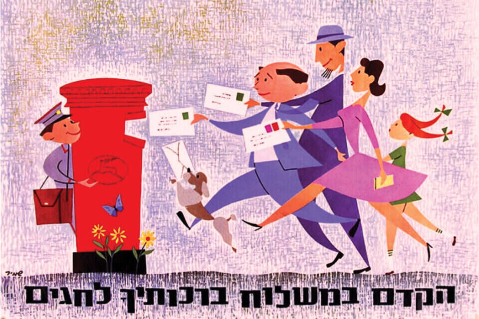 כרזה שקוראת לציבור לשלוח איגרות שנה טובה - מוקדם ככל האפשר // עיצוב: האחים שמיר
