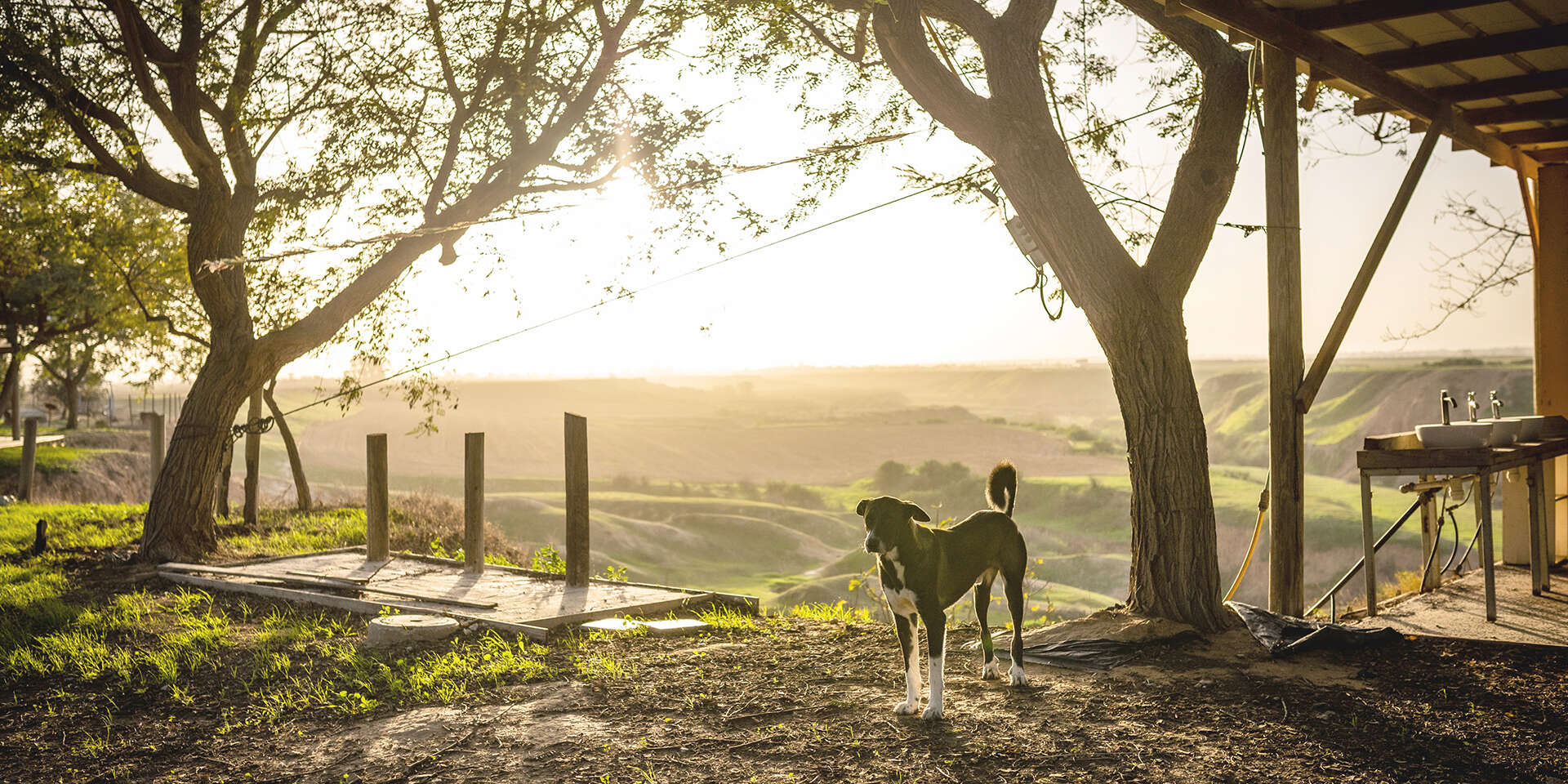 עצי מכנף נאה ואלביציה נישאים לגובה, כרמי זית שלא מזמן נמסקו ונעצר מהם השמן, פרחים בכל מקום, וכמה שמנסים אי אפשר לדמיין את צחיחות הקיץ שחיכתה שם לפני כ־30 שנה, אז דנדן ולילך לוי בחרו באדמה הזו, לטעת בה חווה לטיפול בחיות בר.