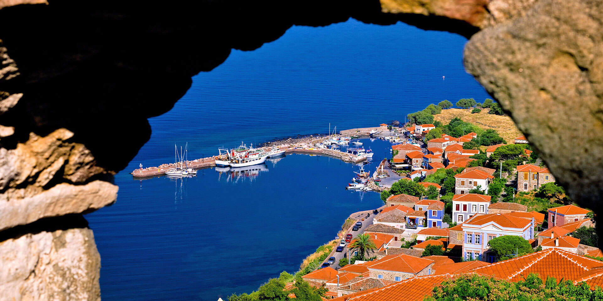 צאו איתנו ברכב ממיטיליני לסיור בצד הצפוני־מערבי של האי. היעד באפליקציית הניווט היא עיירת החוף הקטנה סקאלה ארסוס. הכביש מתפתל במעלה ההר בין יערות אורן גדולים, שמתחלפים בדונמים של עצי זית. מההר הוא יורד אל המפרץ הענק, החוצה את האי ומשווה לו צורת פרפר. משם מתחילים לעלות שוב לשטח ההררי הצפוני והלא מיוער.