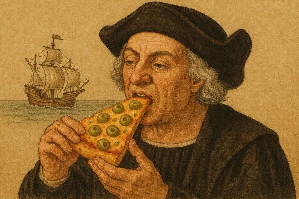 הצלחת המודרנית שלנו היא תוצר ישיר של אותו מפגש בין-יבשתי. היא כוללת שילובים בלתי אפשריים שלא היו מתקיימים לולא קולומבוס. פיצה נפוליטנית עם עגבניות אמריקניות, קפה אתיופי יחד עם סוכר קאריבי, שוקולד מקקאו מזו-אמריקני שעבר תהליך עיבוד בהולנד.